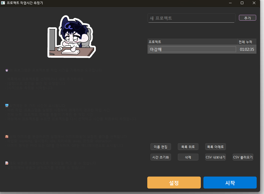 이렇게 저장하고 시작하면 작업화면 옆에서 같이 작업하는 개만이가 보입니다.